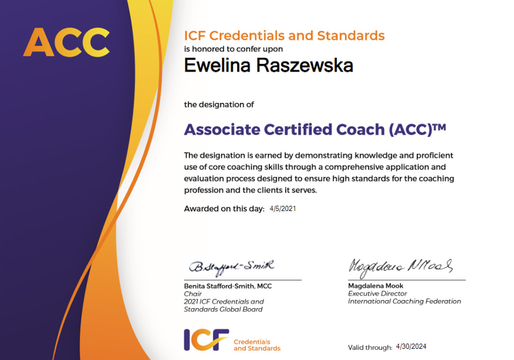 Coach na poziomie Associate Certified Coach (ACC ICF)