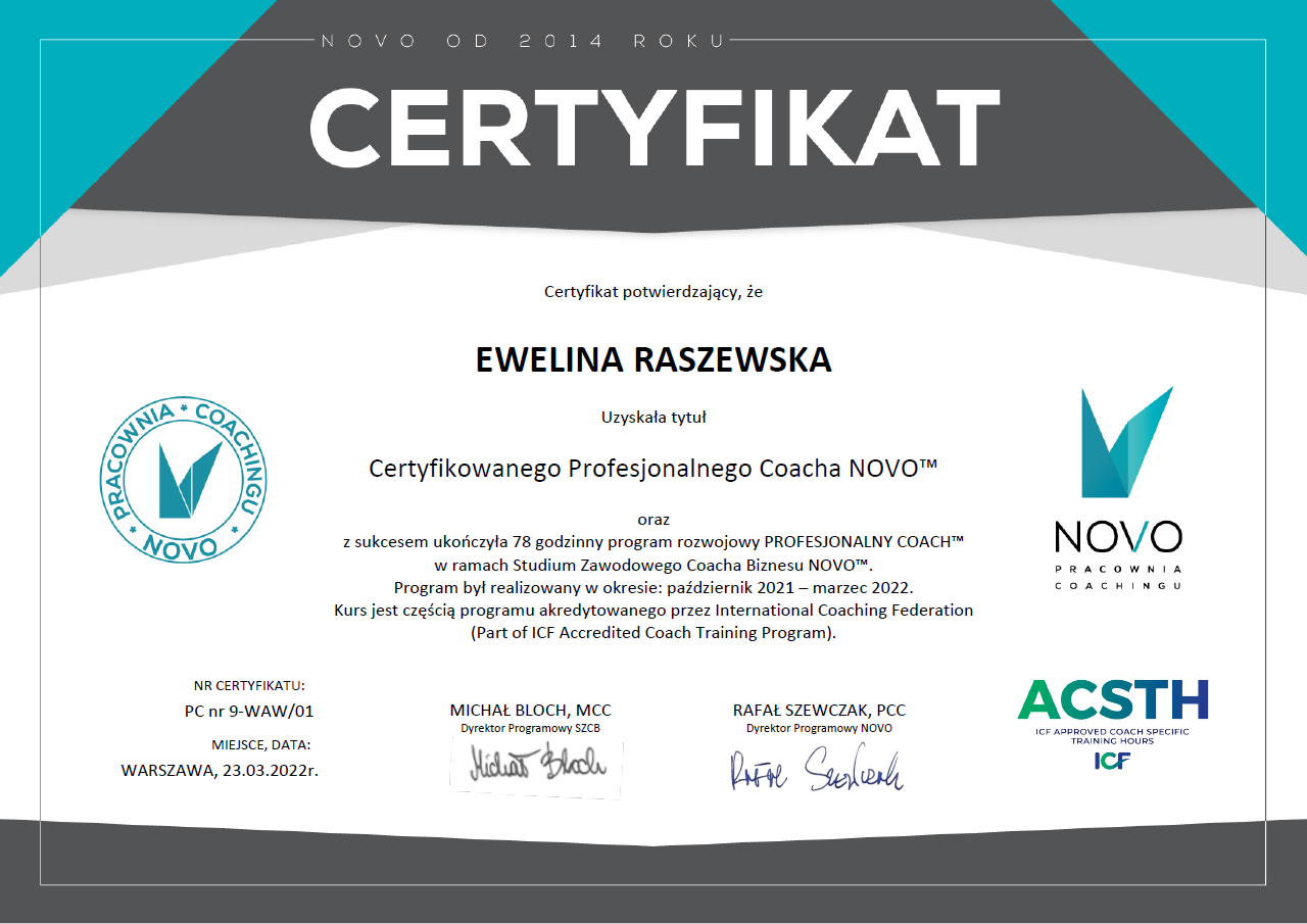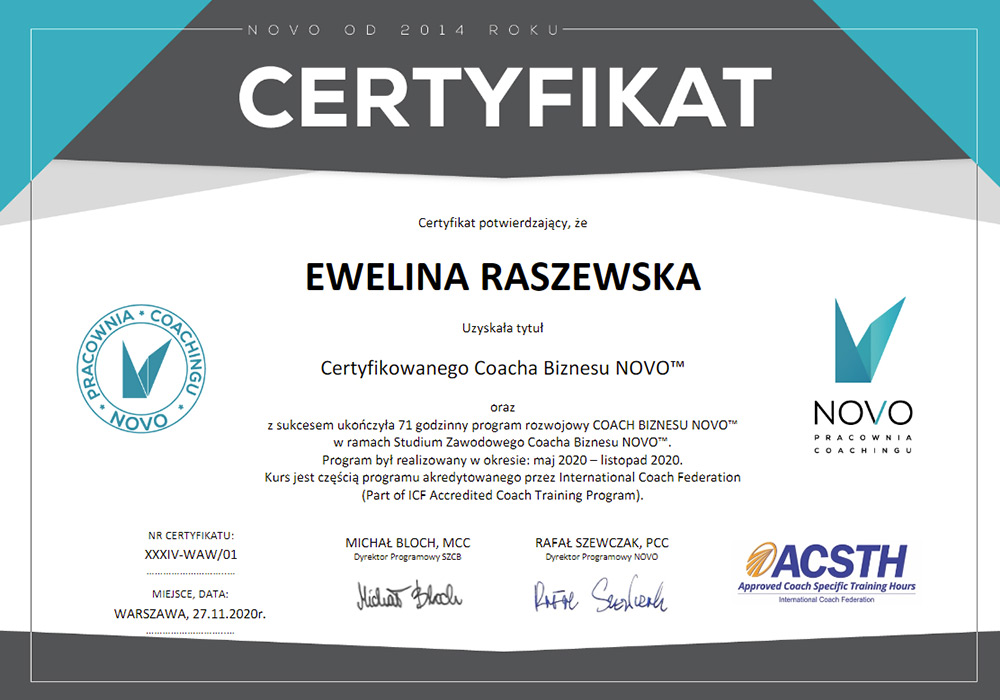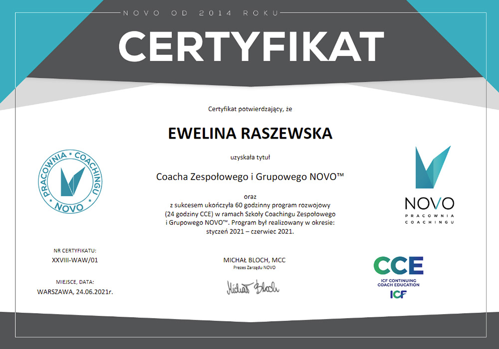 Certyfikowany Coach Zespołowy i Grupowy NOVO